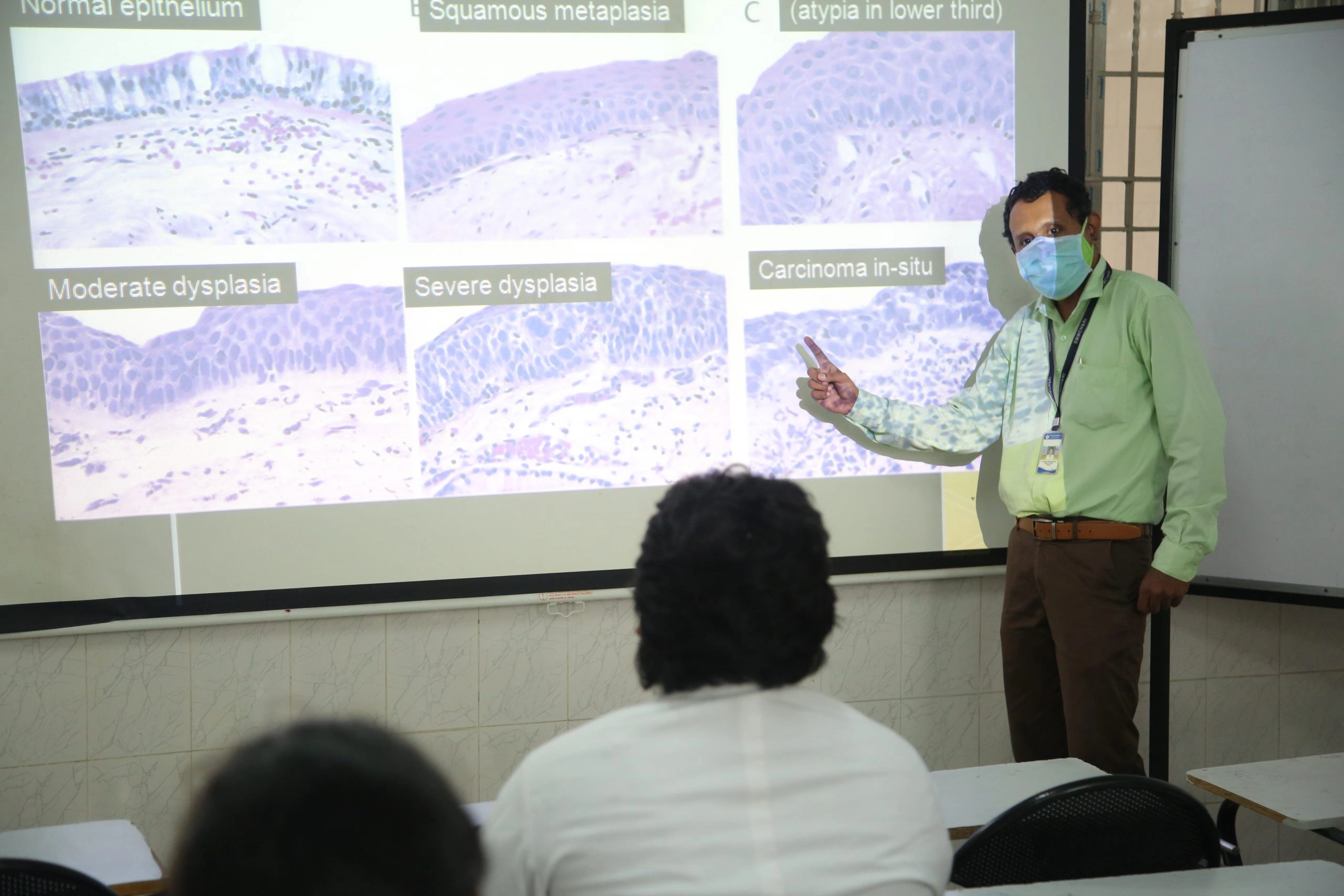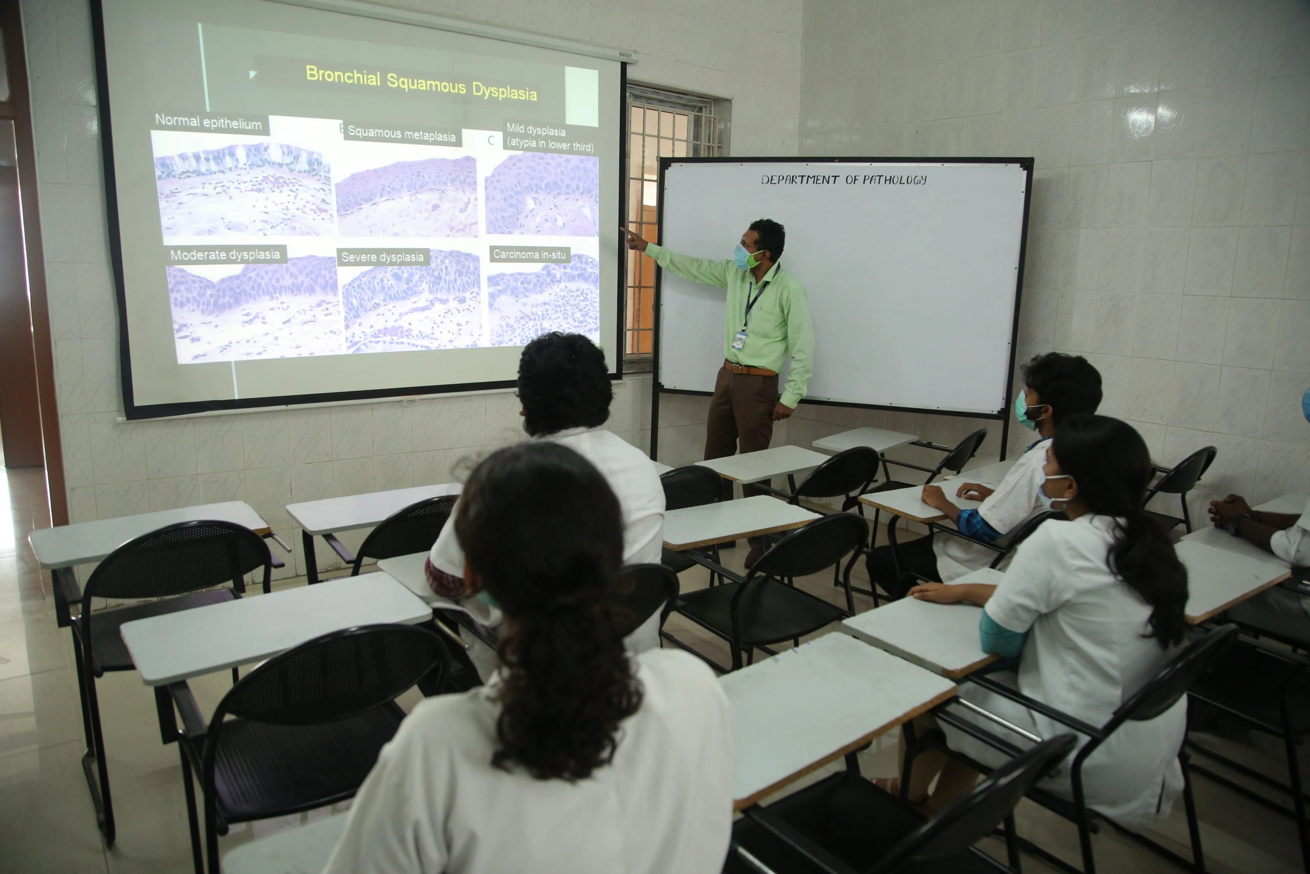 The department is headed by an experienced pathologist of national repute and comprises a team of experienced faculty. They are actively involved in Diagnostic work, Curriculum development, Undergraduate teaching and Research.